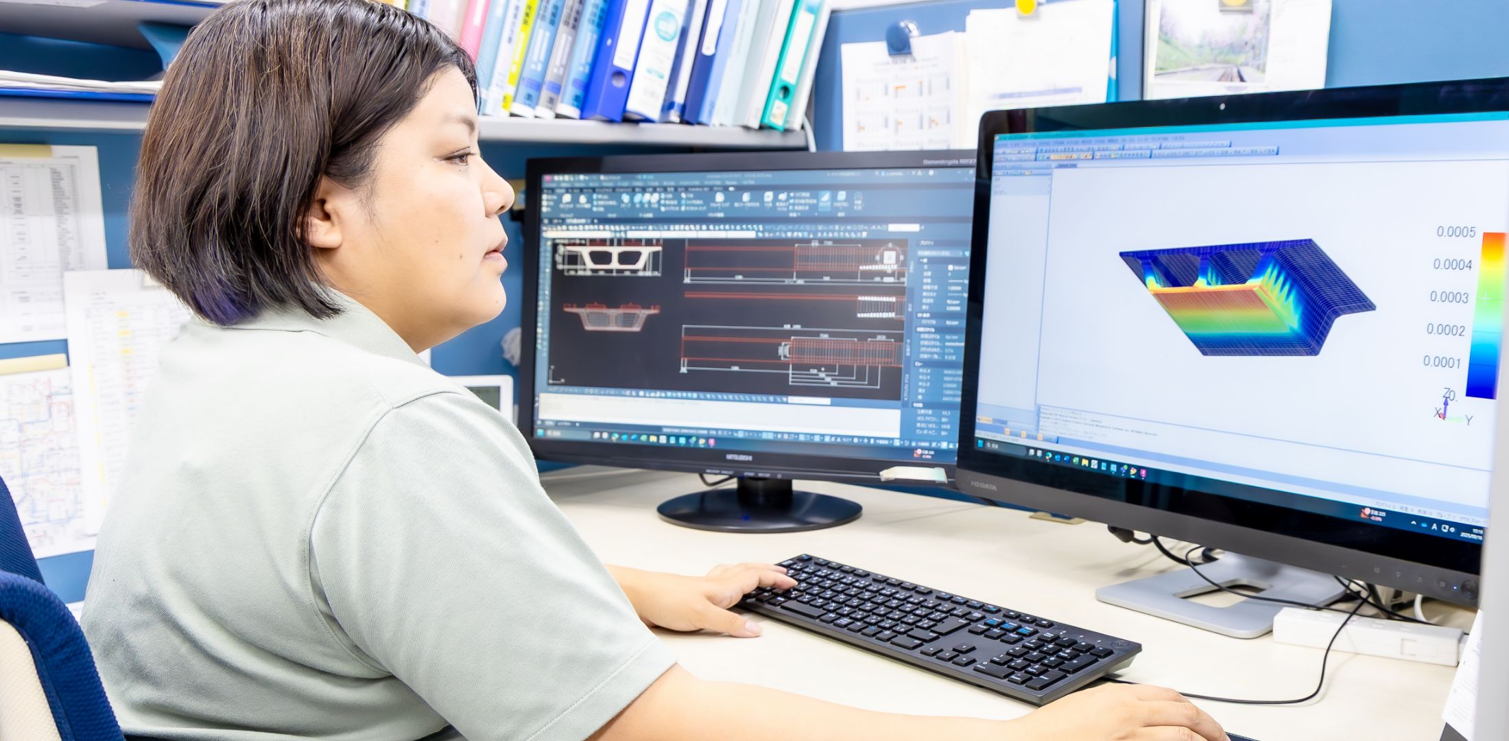 現在は、鉄道構造部門で主に解析業務を担当しています。橋や駅など、私たちが日常的に利用している構造物に自分の仕事が関わっていると感じられる瞬間に、大きなやりがいを感じます。