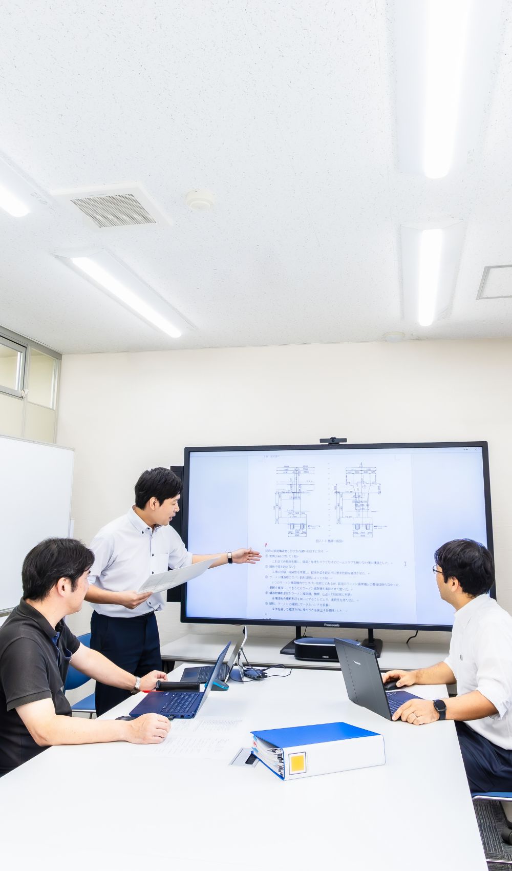 - 部長会議では各部署との情報共有や技術的連携、売り上げ状況などを確認しています。